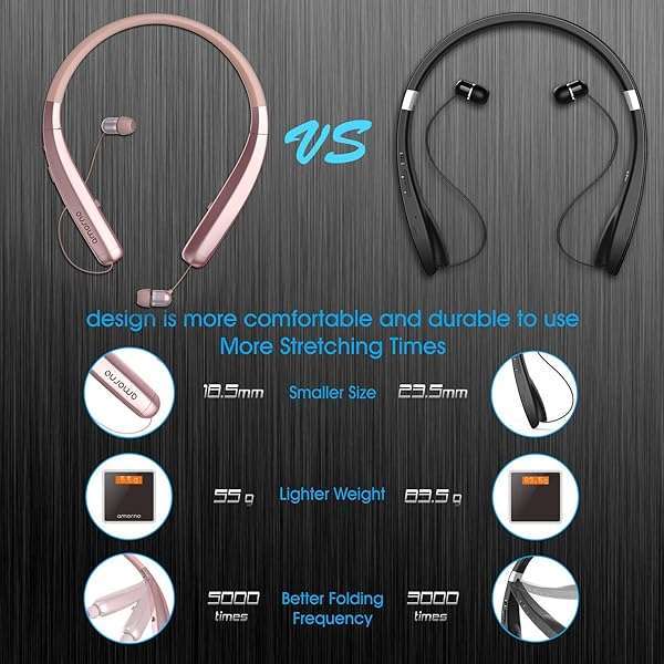 - AMORNO Foldable Bluetooth Headphones, Wireless Neckband Sports Headset with Retractable Earbuds, Sweatproof Noise Cancelling Stereo Earphones with Mic: reliable performance and quality- [Foldable and Lightweight] The wireless neckband- [Auto Retractable Earbuds]: One button to control, the- [Neckband Design & Vibration Reminder]: The excellent- [Bluetooth 5.0 & CVC6.0 noise Cancelling Technology]: