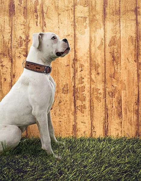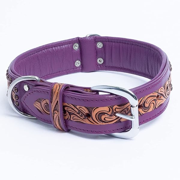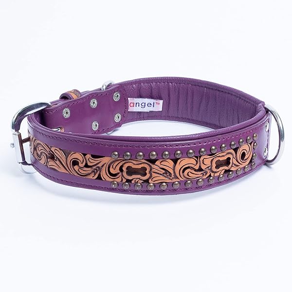 - Angel Pet Supplies Genuine Leather San Antonio Dog Collar | Perfect for Medium, Large & XL Dogs | Stainless Steel Buckle | Strong, Real Argentinean Leather | Handmade | Multiple Colors and Sizes offers reliable performance and quality- 100% Genuine padded Argentinean cowhide leather; Hair-On leather, hand-dyed, inlay- For any breed with a neck size between 17. 5" - 22": Shepherds, Labs, English/American BULLDOGS and similar breeds