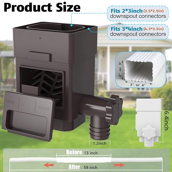 - Anivia Rainwater Collection System, Downspout Diverter Fits for 2x3 or 3x4 Inch Standard Downspouts, Rain Barrel Diverter Kit with Adjustable Valve and Filter. 5ft Hose - Brown with reliable performance and quality- Enhanced Filtering SystemSay goodbye to clogged rainwater collection systems! Our system is equipped with a removable filter window and filter net, allowing for easy cleaning of debris and residue, ensuring crystal-clear rainwater collection.- Multiple Drainage