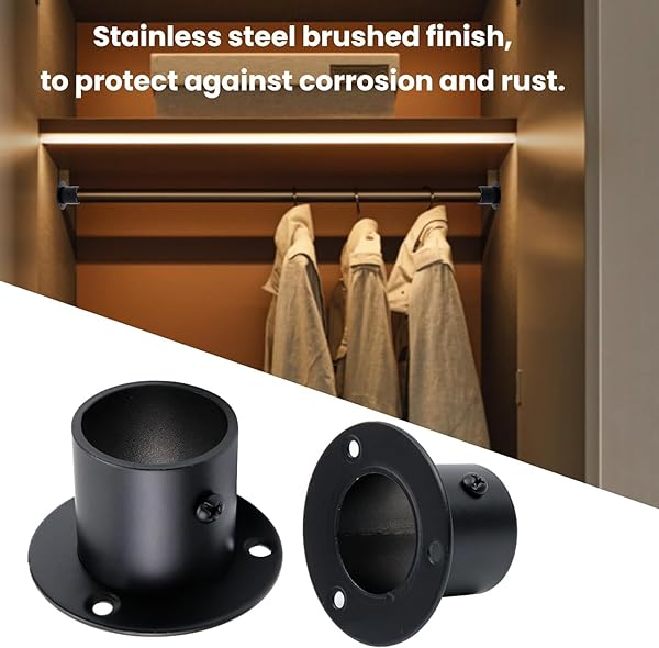 - Antrader 0.75 Inch Diameter Stainless Steel Matte Black Adjustable Closet Rod Flange Holder Shower Socket Bracket Support Pack of 4 offers reliable performance and quality- Constructed of stainless steel ensuring durability and dependability- Stainless Steel Matte Black Finish, to protect against corrosion and rust- Suitable for diameter 0.75-Inch (19mm) closet rod or stainless steel tube