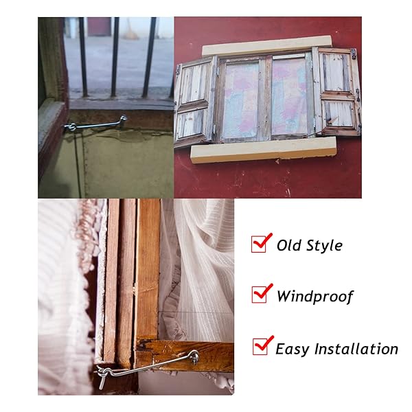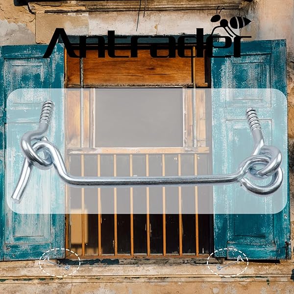 - Antrader 3 Inch Zinc Plated Steel Hook & Eye Wood Gates Window Screen Gate Door Latch 24-Pack offers reliable performance and quality- It comes complete with fasteners for a quick and easy installation window Hook and Eye- These Screen Door Hook and Eye Latches are manufactured from Carbon Steel material with easy installation Sharp Point bites into wood quickly