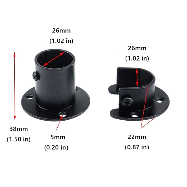 - Antrader 4-Pack Heavy Duty Stainless Steel Closet Rod End Supports Closet Pole Sockets Flange Rod Holder Set with Screws, 1 Inch Dia Matte Black, U-Shaped and O-Shaped offers reliable performance and quality- Constructed of stainless steel ensuring durability and dependability- Inside diameter is 26 mm/ 1, suitable for diameter 25 mm/ 1" closet rod or stainless steel tube