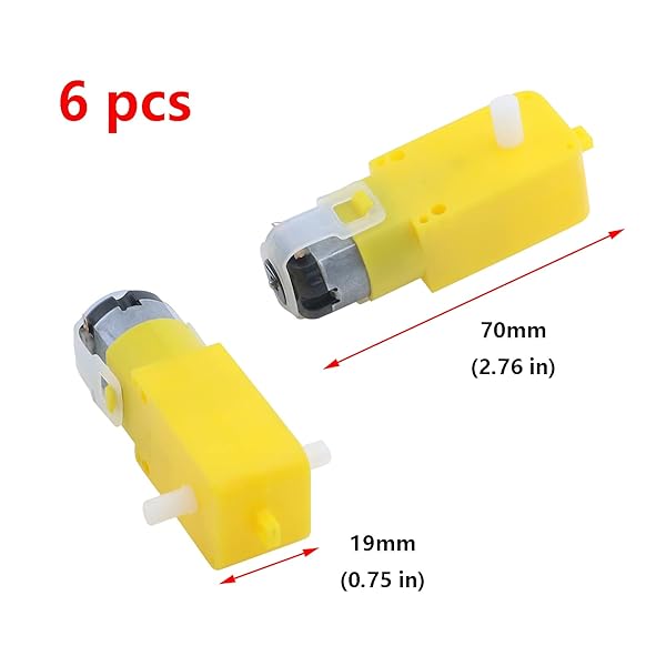 - Antrader Gear Motor Dual Shaft 3-6V TT Motor for Smart Car Robot Pack of 6 (I Shape) offers reliable performance and quality- 6pcs TT Motor Robot Gear Motor, Size(Approx): 7 x 2.2 x 1.9cm/ 2.76" x 0.87" x 0.75"- Maximum torque: 800gf cm min (3V) ; No-load speed: 1:48 (3V time)- Operating voltage: 3V~12VDC (recommended operating voltage of about 6 to 8V)- Robot Car And Axle Kit. With EMC, strong magnetic, it has an anti-interference ability