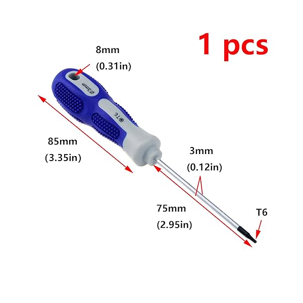 - Antrader T6x 3" Professional Torx Screwdriver With Magnetic Tip,16cm Overall Length (1 Pcs,Blue) with reliable performance and quality- T6 Torx Head Magnetic Screwdriver, 1 pcs for sale.- Features: 3mm torx diameter and handle with 8mm hole- 75mm/ 2.95 in shaft length, 85mm/ 3.35 in handle length- Alloy Steel T6 Torx Screwdriver, corrosion-resistant satin finish and magnetic tip, more convenient and practical to use.