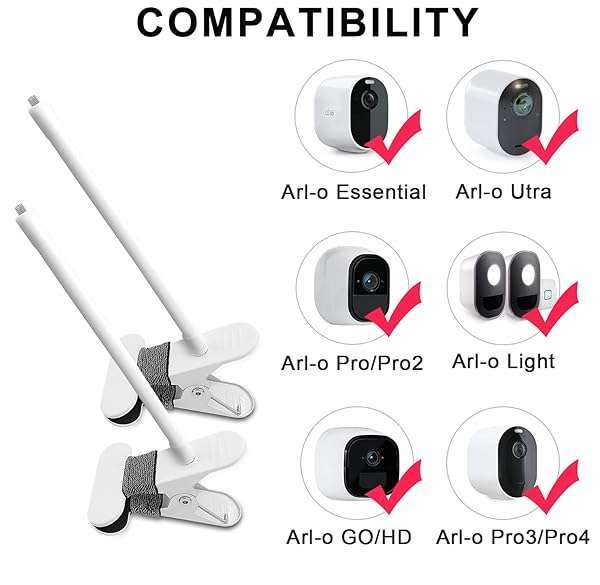 * AOZTSUN 2Pack Flexible Clamp Mount Compatible with Arlo Cam, Arlo Pro/Pro 3/Ultra/Ultra 2, & Others - Flexible Gooseneck Mounting Bracket - No Tools or Wall Damage Required (White): 2pack flexible clamp mount compatible with arlo cam * Arlo Pro/Pro 2/Pro 3/Ultra/Ultra 2 * & Others Flexible Gooseneck Mounting Bracket No Tools or Wall Damage Required (White) * Compatiblity:This mounting bracket Compatible with Arlo Pro * Arlo Pro 2