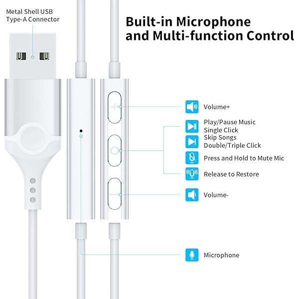 - USB Headphones with Microphone for Laptop, 7.5ft Magnetic Wired Earbuds Noise Isolation in-Ear Earphones with Mute Volume Control Stereo Bass for PC Desktop Dell HP Acer Laptop Meetings/Music,School with reliable performance and quality- Noise Isolation and HiFi Stereo Sound: These USB headphones Type-A connector built-in advanced digital DAC 7.1 chip which enables to transmit high fidelity stereo sound without any loss. The soft silicone ear tips help isolate ambient noise effect