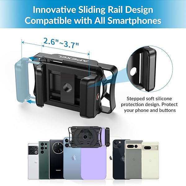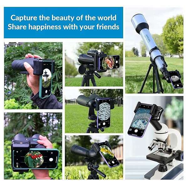 * APEXEL Telescope Phone Adapter, Binocular Photo Adapter for Android & iPhone, Phone Holder Mount for Telescope, Monocular, Binocular, Microscope, Spotting Scope. (Including Bluetooth Shutter Remote): 3-step installation in 5s apexel telescope phone adapter adopts a revolutionary fixing method * The one-piece slide rail and stretch clip design * Can complete the 3-step installation in 5 seconds without fuss * It also includes a bluetooth shutter remote * Capture moments effortlessly with just a