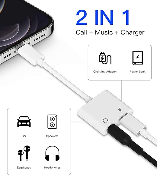 * 2PackApple MFi CertifiedIphone AUX Adapter Lightning to 3.5mm Cable with Audio Jack Headphone Earphone Dongle and Charger for 11 12 MINI PRO MAX XS XR X 8 7Plus Accessories Adaptor Charging Ipad AIR: 2packapple mfi certifiediphone aux adapter lightning to 3.5mm cable with audio jack headphone earphone dongle and charger for 11 12 mini pro max xs xr x 8 7plus accessories adaptor charging ipad air * Multi Function: The 2 in 1 Lightning to 3.5mm Headphone Audio & Charger adapter cable supports
