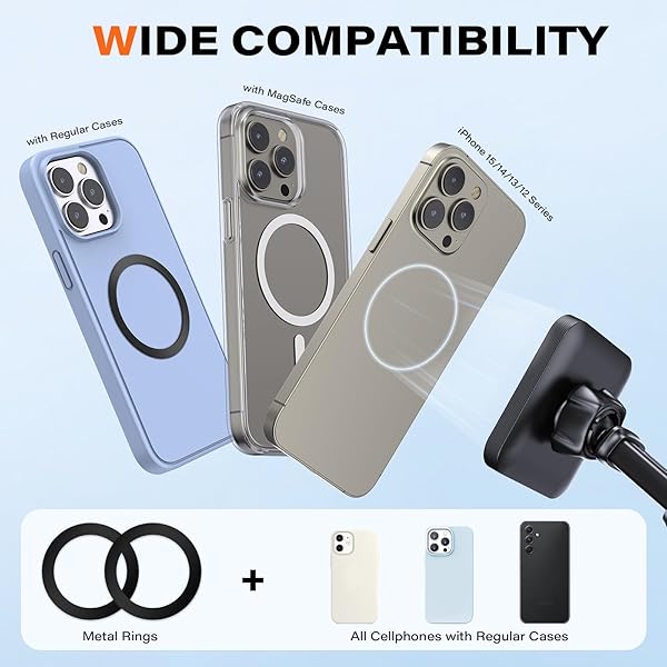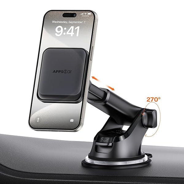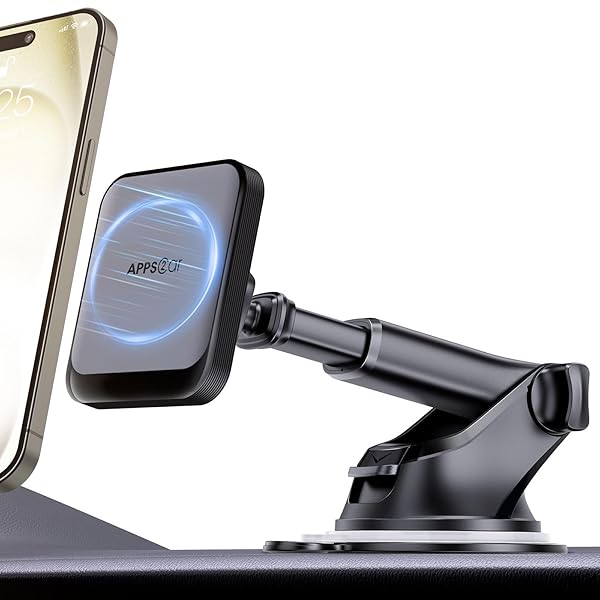 - APPS2Car for MagSafe Car Mount, Magnetic Phone Holder for Car with Suction Cup, 17 Strong Magnets & Adjustable Arm, Dashboard & Windshield Phone Mount Compatible with MagSafe Case iPhone 1217 Series with reliable performance and quality- [Compatible with MagSafe Series]: This APPS2Car phone holder for car windshield mount is fully compatible with caseless iPhone 12-17 series and MagSafe cases. For other phones and cases, simply attach the included magnetic ring for a secure hold.<