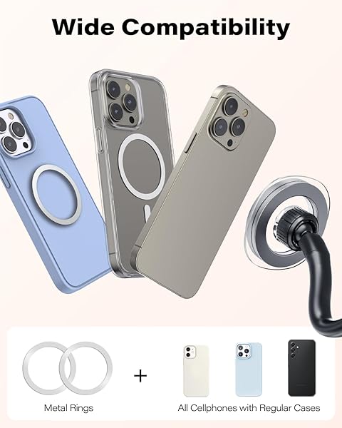 - APPS2Car for Magsafe Car Mount, Magnetic Car Phone Holder Mount Fit for iPhone 15/14/13/12 Series/Magsafe Case with reliable performance and quality- Fits for Magsafe Car Mount: Designed for iPhone 12 or later versions, 1:1 alignment with Magsafe without affecting phone signal. For Non-Mag safe iPhone and Android models, two metal ring stickers were provided for magnetic attraction- Superior Suction Cup Holder: Enjoy a secure and hassle-free driving experience with the APPS
