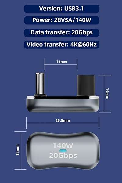 - AreMe 180 USB C Adapter (2 Pack), 180 Degree Angle USB-C Male to Female 20Gbps PD 140W Adapter for Steam Deck, Switch, Laptop, Tablet, Phone and More Type C Devices provides reliable performance an...- 180 Degree Angle U Shape DesignThis 180 degree angle adapter allows the cable to have a suitable extension direction, which can avoid the wear of the cable and the input port of the device, prolong...