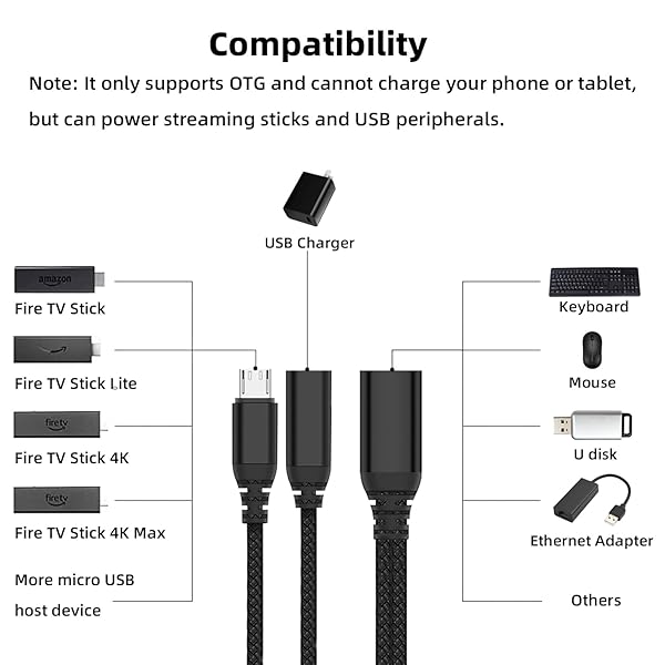 - AreMe 2 Pack OTG Cable Adapter for Fire TV Stick 4K, Powered Micro USB to USB OTG Cable for Android Phone Tablet and More Host Devices with Micro USB (Black) provides reliable performance and quality- CompatibilityThe micro USB OTG cable is designed for Fire TV Stick, Fire TV Stick 4K, Fire TV Stick 4K Max, Fire TV Stick Lite, Chromecast, other streaming sticks and more host devices with micro USB.