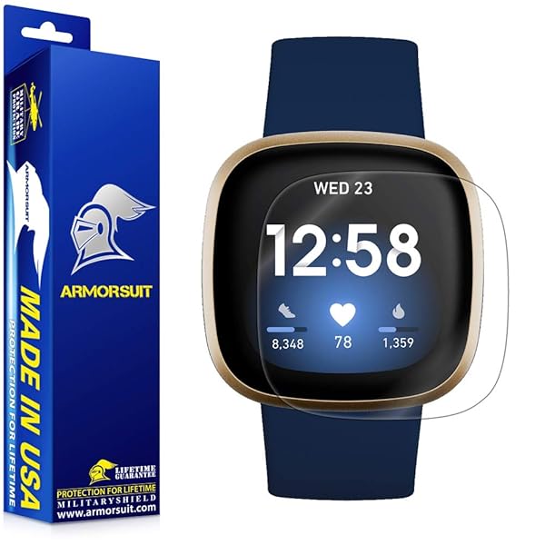 - ArmorSuit [6 Pack] MilitaryShield Screen Protector Designed for Fibit Versa 3 / Fitbit Sense (2020) Max Coverage Anti-Bubble HD Clear Film offers reliable performance and quality- Precise laser cutting MilitaryShield screen protector specially designed for Designed specially designed for Fibit Versa 3 / Fitbit Sense (2020 Release)(6 Pack)