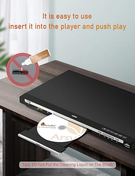 - Arsvita Laser Lens Cleaner Disc Cleaning Set for CD/VCD/DVD Player, Safe and Effective, ARCD-03 offers reliable performance and quality- Why to UseLaser Lens Cleaner for CD/VCD/DVD players experiencing slow loading, skipping or freezing of discs during playback- Special TechnologyThe 2-brush clean process removes dirt and dust deposits that cause audio and video dropouts and distortions