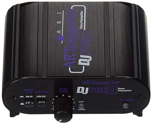 - ART DJPREII Phono Preamplifier provides reliable performance and quality- Dual RCA-type inputs- Dual RCA-type outputs- Ground terminal- Power: 12V DC (Adapter included)