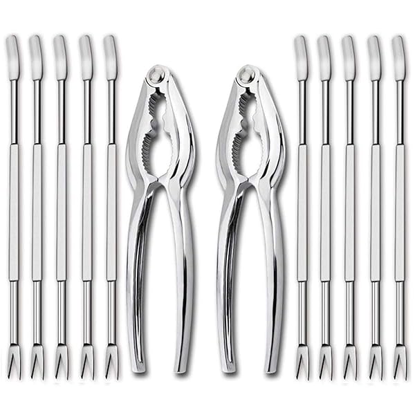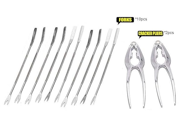 - Artcome 12 Pieces Seafood Tools Set including 2 Lobster Crab Crackers and 10 Forks offers reliable performance and quality- This seafood tools set includes 2x Zinc alloy crackers and 10x Stainless steel forks- Stylish and ergonomic design, great for restaurants, picnic and home use- Good for Seafood, e.g. Lobster, Shell Fish, Oysters, Crab Shells and Nuts- Durable and Dishwasher safe