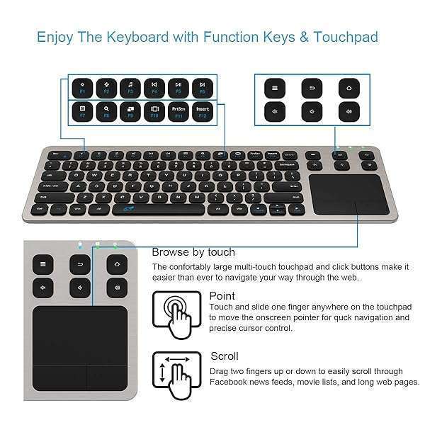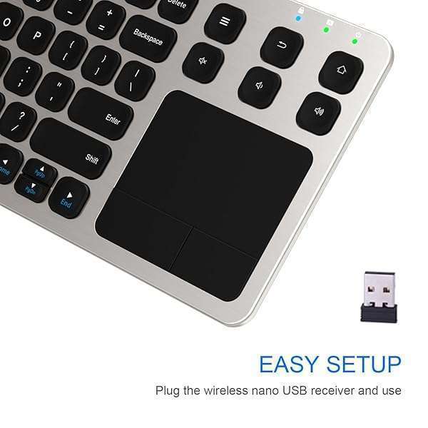 - Arteck 2.4G Wireless Touch TV Keyboard with Easy Media Control and Built-in Touchpad Mouse Solid Stainless Ultra Compact Full Size Keyboard -Connected Computer, Smart TV, HTPC offers reliable performance and quality- Easy Setup: Simply insert the nano USB receiver into the TV-connected computer, smart TV or HTPC and use the keyboard and the trackpad instantly