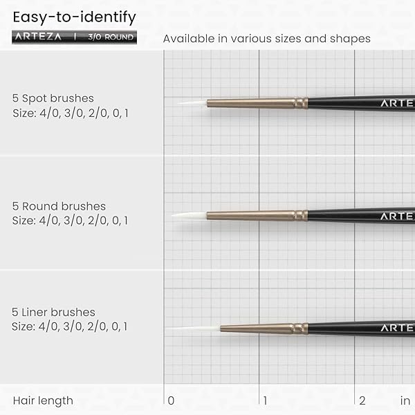 - ARTEZA Detail Paint Brushes, Set of 15, Fine Detail Brush Set for Miniature Models and Canvases offers reliable performance and quality- Fine Detail Paint Brushes: This set of 15 fine detail brushes is perfect for adding the smallest details to your artwork or adding color to your miniature models- Wide Range of Brush Sizes: Find the perfect tiny or thin paintbrush in this complete set that includes liners, rounds and flats of 4/0, 3/0, 2/0, 0 & 1 sizes
