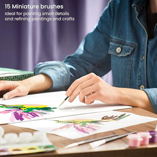 ARTEZA Detail Paint Brushes Set of 15 - Perfect for Miniature Models & Canvas Art