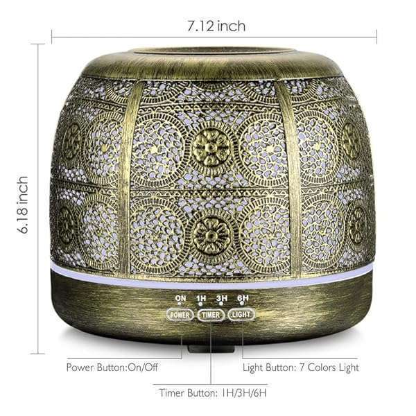 * ARVIDSSON 500ml Essential Oil Diffusers for Large Room, Metal Diffusers for Essential Oils, Ultrasonic Aromatherapy Diffuser for Home Office, Gift for Women and Men: arvidsson 500ml ultrasonic diffuser for essential oils provides a customized aromatherapy experience with an elegant moroccan design that will elevate any home dcor * With longer run times and various light modes * This diffuser will let you experience essential oils in a whole new way * Ultrasonic Cool Mist Technology: Experience