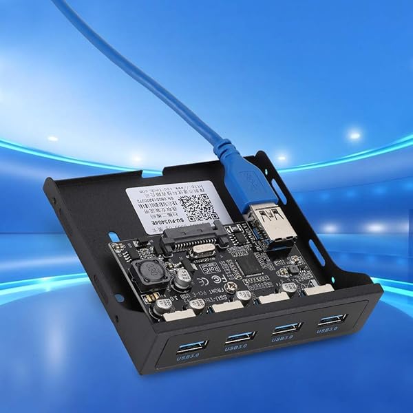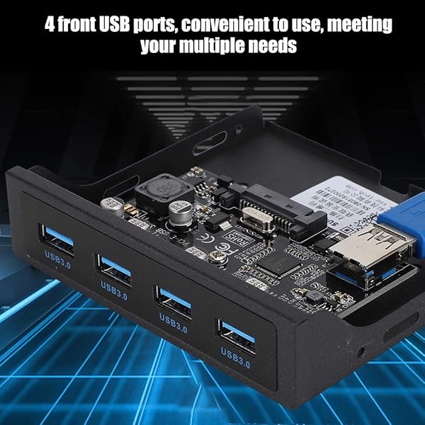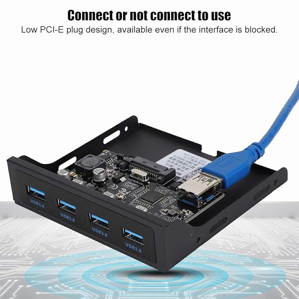 - ASHATA USB Front Panel,PCI-E to 4xUSB3.0 for Chip Front Floppy Bay Adapter Expansion Riser Card, PCI-E to USB3.0 Card Front Floppy Expansion Card,Black offers reliable performance and quality- Front Floppy Expansion Card4 front USB ports, convenient and easy to use, meeting your multiple needs- ProfessionalAnti- burning insurance, protecting your equipment from damage. Built- supply module, equipped with SATA power supply interface