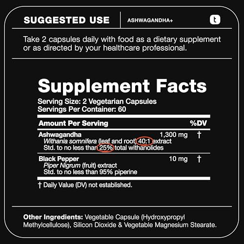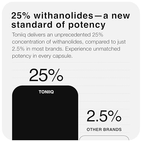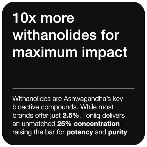 - Toniiq Ashwagandha 40:1 Concentrated Extract 25% Withanolides Wild Harvested in India Highly Bioavailable with Black Pepper Third-Party Tested 120 Capsules - 1,300mg per Serving offers reliable performance and quality- Ultra-Concentrated Extract: Each serving of 1,300mg Ashwagandha is standardized to a 40:1 concentration, providing the equivalent of 52,000mg of raw ashwagandha root and leaf