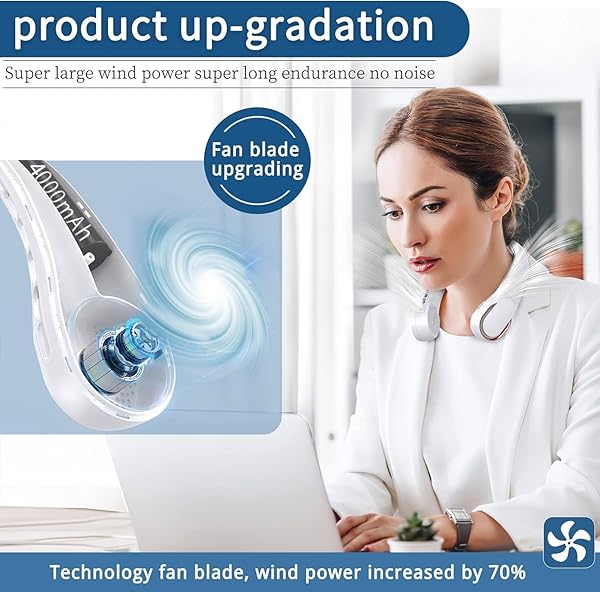 - ASNUG Portable Neck Fan, Bladeless Neck Fan, USB Rechargeable Personal Fan, 4000 mAh Battery Operated Fan, 3 Speeds Adjustable,Faster Cooling, Ultra Quiet, Suitable for Home, Office, Sports with reliable performance and quality- [Safe Design & Cooling Upgrade] Upgraded Bladeless neck fan, which will not pinch hair or cut your fingers, ensuring safe use for long hair people, children and the elderly. Upgraded air outlet design, 360 surrounding air outlet, and a new generation of tu