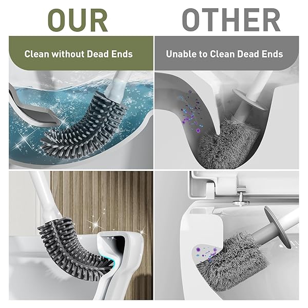 - ASOBEAGE Deep Cleaner Toilet Brush: Silicone Toilet Brush with No-Slip Long Plastic Handle and Flexible Bristles, Quick Drying Holder Set for ToiletWhite offers reliable performance and quality- Silicone brush headThe head of the toilet brush is made of TPE material, will not hurt the toilet and pick up dirt. The toilet brush never wear out and change its shape, maintaining perfect cleaning