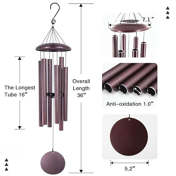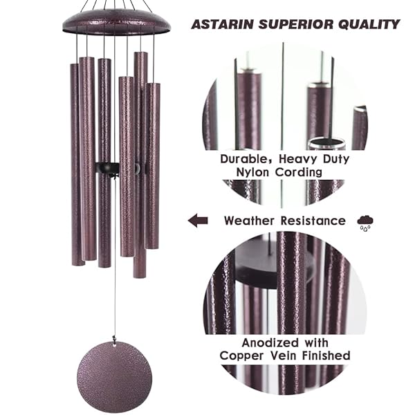 - ASTARIN Wind Chimes Deep Tone, 36 Inch Large Metal Windchimes Outdoor Large Deep Tone with 6 Metal Tubes Deliver Soft Melody, Tuned WindChimes for Garden Balcony Patio and Home Decor. Bronze: reliable performance and quality- Large Tuned wind chimes outdoor total hanging length- Many wind chimes disappoint. Others irritate. Astarins- The metal wind chimes is made entirely of aluminum- The copper vein finish is bronze finished with veins