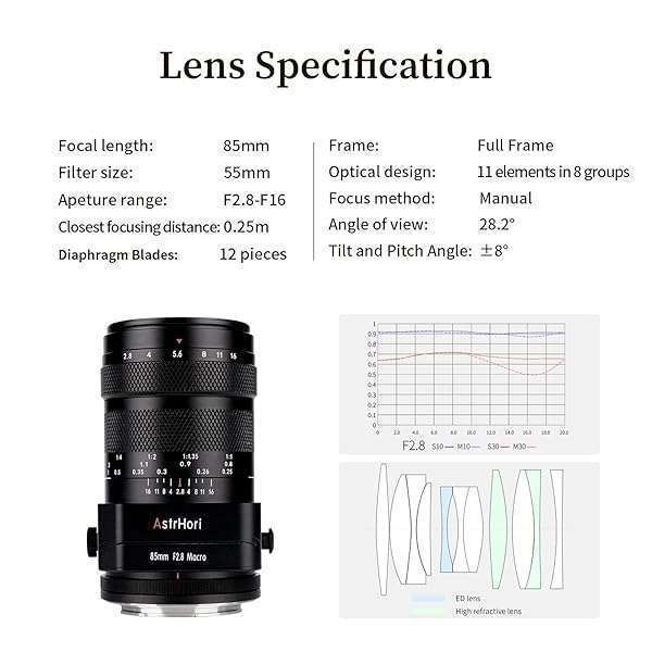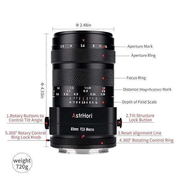 - AstrHori 85mm F2.8 Macro & Tilt & Medium Telephoto 3-in-1 Manual Full Frame Insect Jewel Portrait Lens for Canon RF Mount Series Mirrorless Cameras EOS RP,EOS R5,EOS R6,EOS R3,EOS R,etc(Black) prov...- Full Frame Macro Lenses:The closest focusing distance is 0.25m, and the closest working distance is 0.11m. It makes it easy to capture more invisible details when taking macro shots. The magnificat...