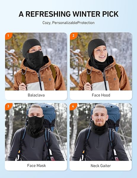 - AstroAI Balaclava Ski Mask Winter Fleece Thermal Face Mask Cover for Men Women Warmer Windproof Breathable, Cold Weather Gear for Skiing, Outdoor Work, Motorcycling, Snowboarding, Black-M, 21.5-23" offers reliable performance and quality