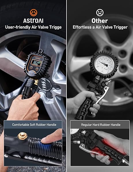 - AstroAI Digital Tire Inflator with Pressure Gauge, 250PSI Air Chuck and Compressor Accessories Heavy Duty Tire Pressure Gauge Compatible with Bicycle/Truck/SUV/Motorcyle/RV with reliable performance and quality- WHY CHOOSE ASTROAI: Based in Garden Grove, California. AstroAI services 15+ countries worldwide and 3,000,000+ users, it has become the preferred choice of countless users thanks to its high accuracy, durability, and user-friendly operation.- Large colorful LCD scre