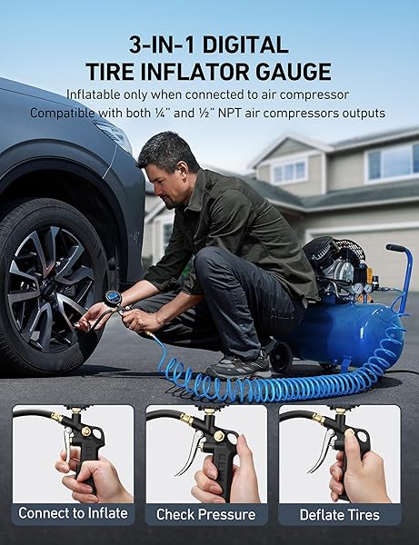 - AstroAI Digital Tire Pressure Gauge with Inflator, 3-250 PSI Air Chuck & Compressor Accessories Heavy Duty with Quick Connect Coupler, 0.1 Display Resolution, 1pack offers reliable performance and quality- COMPATIBLE WITH both and NPT air compressors outputs. COMPATIBLE WITH Standard Schrader Valves