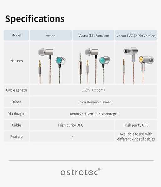 - keephifi Astrotec Vesna Wired Earbuds with Microphone Tiny Earbuds in Ear Monitor with LCP Diaphragm Portable Earphones Noise Cancelling Earbuds Neutral Balanced Sound for Sport (Silver with Mic) offers reliable performance and quality