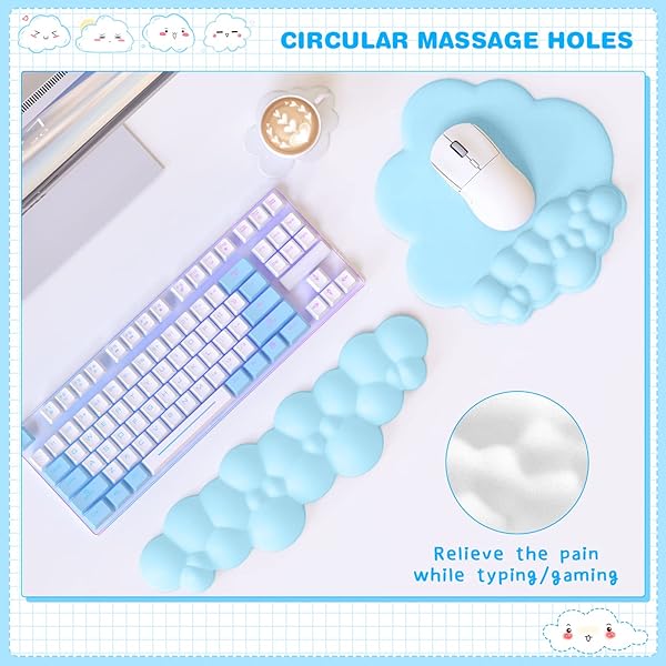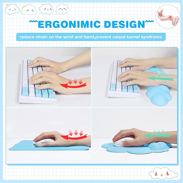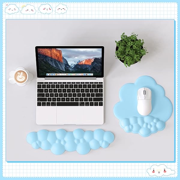 - ATTACK SHARK Cloud Wrist Rest Keyboard, Cloud Mouse Pad Wrist Support, Ergonomic Gaming Arm Wrist Rest for Desk Computer Keyboard Cloud Drink Coaster and Simple Mouse Pad (Blue) with reliable performance and quality- Personalized DesignThis cloud shaped design set includes a mouse pad with wrist rest, keyboard wrist rest, and cup coaster. They have a cute appearance, bright colors, and a variety of color choices, making your table top unique and making you feel more relaxed while