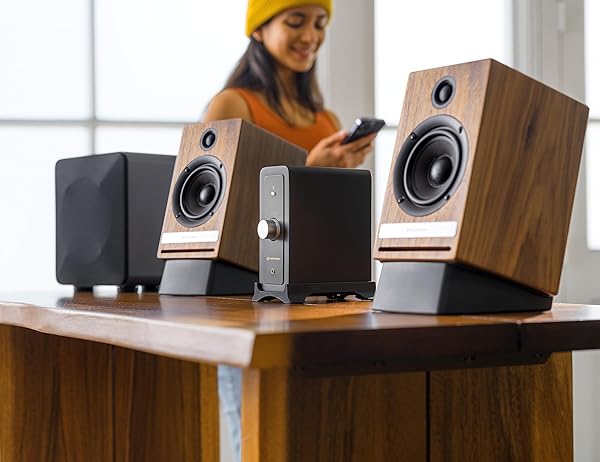 - Audioengine N22 100W Mini Desktop Home Stereo Power Amplifier Amp with Bluetooth AptX: reliable performance and quality- EASY CONNECTIVITY - Connect via Bluetooth, Dual Analog, or USB-C.- VERSATILITY - Made with a real wood cabinet and designed for your- YOU WILL LOVE IT - Bluetooth aptX for CD quality music. USB-C input- IMPRESSIVE SPECS - Experience powerful sound with this Class D