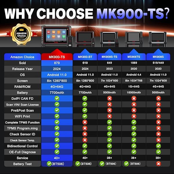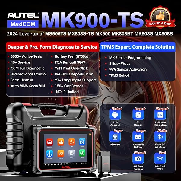 * 2025 Autel MaxiCOM MK900TS Scanner, MK900-TS Up of MK808S-TS MK900BT MK900 MX900, Bidirectional Scan Tool w/Top TPMS Function, All System, CAN FD & DoIP, 3000+ Active Test, 40+ Service, FCA, OS 11.0: 2025 autel flagship mk900ts * Up from MS906TS MK808S-TS MX808S-TS * 2.0 Ver * Of MK900 MX900 MK900BTFor TPMS Functionary: MK900TS = MS906 PRO-TS MP900TS MX900TS TS900 MX808S-TS MK808S-TS TS608 * For Diagnostic Functionary: MK900TS = MK900BT MK900 MX900 MK808S MX808S MK808Z