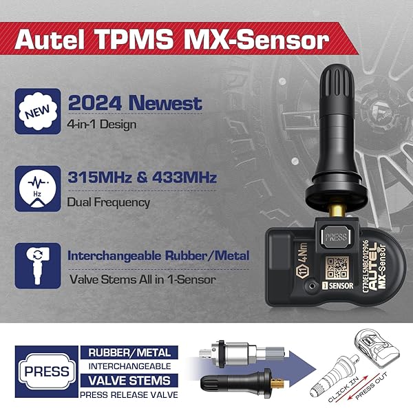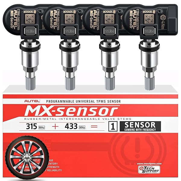* Autel TPMS Sensors 315Mhz/ 433Mhz 2in1, MX Sensor OE Level Press-Release Universal Tire Sensors 100% Cloneable by TPMS Tool TS408 TS501 PRO TS508 TS508WF MS906TS MS906 PRO-TS (4PCS Metal Stem): designed for autel tpms toolsautel tpms mx sensor must be programmable with autel tpms programming tools before installation: ts408 * TS408S * TS501 * TS501 Pro * TS508