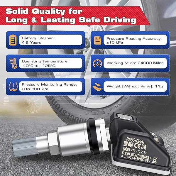 Autel TPMS MX Sensor 315/433MHz - Universal Tire Sensor, 100% Programmable, Compatible with TS408S, TS501, TS508 & More