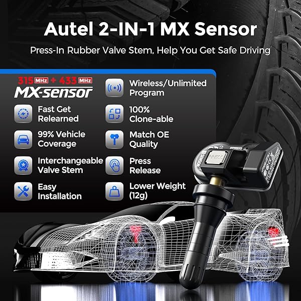 - Autel TPMS Sensor MX-Sensor 2 in 1 (315MHz + 433MHz) Press-in 100% Cloneable TPMS Programmable Sensors Tire Pressure Monitoring System (Rubber Valves) offers reliable performance and quality