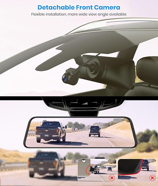 - AUTO-VOX T9PRO OEM Rear View Mirror Camera with Detached Front Lens, 9.35" Full Laminated Touch Screen Mirror Dash Cam Front and Rear with No Glare, Super Night Vision Backup Camera for Car/Truck with reliable performance and quality- Detached Front Camera Eliminates More Blind PointsThe mirror dash cam with a detachable front camera can be installed on the windshield to eliminate more front blind spots, avoiding interference from sun visors or safety devices. Paired with the back