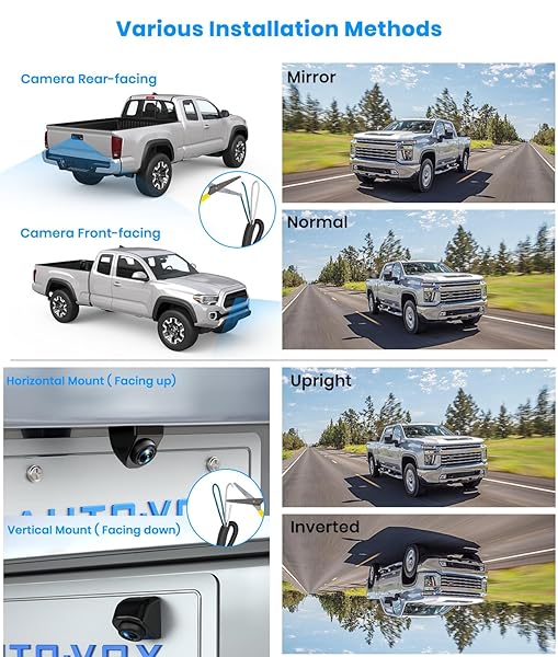 - AUTO-VOX 180 Front/Backup Camera, OEM Mini Style, Screw-Free Easy Install, Side/Rear View Camera, IP69K Waterproof & 0.1Lux Low Light Back Up Camera for SUV/Pickup Truck/RV/Van/Camper/Car with reliable performance and quality- 180 Ultra Wide Angle, Blind Spot Elimination: Unlike other wide angle vehicle backup cameras with severe distortion, the back up camera adopts 180 Ultra Wide Angle making it serve as accurately as almost human eyes to help you back easily and precisely in ti