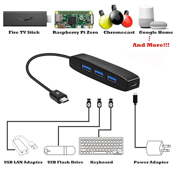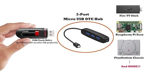 - AuviPal 3-Port Micro USB OTG Hub Adapter (3 USB Ports + Power Port) for Fire Stick 4K, PlayStation Classic, Raspberry Pi Zero, Sega Genesis Mini, S/NES Classic Mini and More - Black provides reliab...- Expand Your Connectivity: Adds 3 USB ports plus a dedicated power port to your host device, letting you connect keyboards, mice, flash drives, Ethernet adapters, game controllers, and moreenhancing...