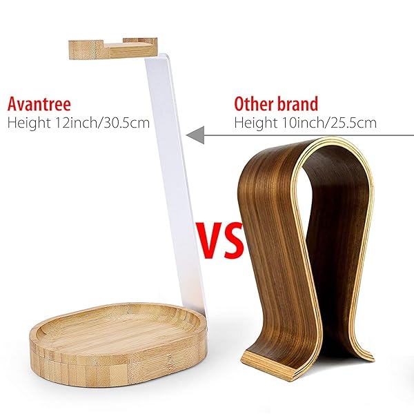 - Avantree TR902 - Universal Wooden & Aluminum Headphone Stand Hanger with Cable Holder, Sturdy Desk Headset Mount Rack with reliable performance and quality- SIMPLE & SPACE-SAVING: Our unique and stylish headphone hanger is constructed from solid aluminum alloy and wood to provide a stable foundation for your headphones - and clear some space on your desk. Designed to withstand the weight of bigger and heavier headphones, TR902 is taller than other headphone stands and features a l