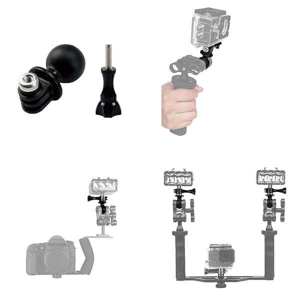 - Ball Head Mount Adapter (1-Inch Diameter Ball) with Thumb Screw for GoPro Hero 11/10/9/8/7/(2018)/6/5 Black,Session 5/4,Hero 3+,DJI Osmo Action,AKASO/Campark/YI Action Camera offers reliable performance and quality- The adapter attaches directly to the under-side of the camera, replacing the mounting bracket- Compatible with RAM mounts- Mount to many double socket arms and mounts- Multiple articulation and adjustment points for perfect viewing angles
