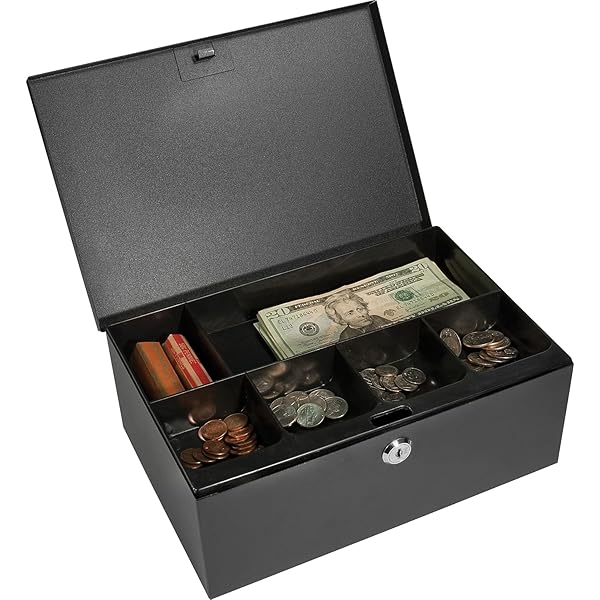 - BARSKA 12-Inch Cash Box and 6 Compartment Tray with Key Lock , Black offers reliable performance and quality- Outer Size: 12-Inch x 7.79-Inch x 4.3-Inch- Key lock entry- Includes a 6 compartment removable tray and set of keys- Body Material: Steel