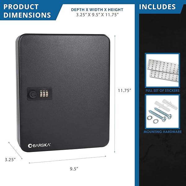 - Barska Wall Mount Key Cabinet with Combination Code Steel Locking Key Organizer Box for Home, Office, Business, Rental Property, and Commercial Use offers reliable performance and quality- KEY CABINET - Secure wall mount lock box with lock boxes for flexible key storage. Keep keys organized and easily accessible- COMBO LOCK - Organize and secure up to 36 keys with ease using our key cabinet equipped with a reliable combination lock for added protection