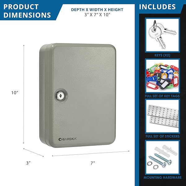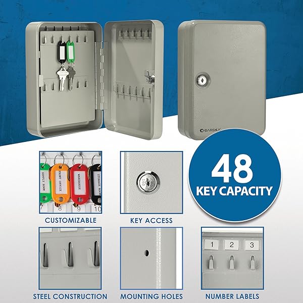 - BARSKA 48 Position Key Safe, Beige, 7" x 3" x 10" provides reliable performance and quality- Included Components: Unit- Instruction Guide- Sport Type: Hunting- Hooks allow you to hang keys with or without key tags or hang multiple keys with key ring. Ideal for home, office, apartment complex, boat dealers, rental car agencies, car lots, body shops and more.