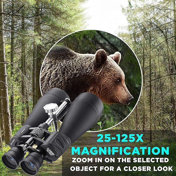 - BARSKA Gladiator 25-125x80 Zoom Binoculars (Green Lens, Braced-in Tripod Adapter) , Black provides reliable performance and quality- High Power BinocularThe powerful 25-125x80 Zoom Binocular from Barska features wide variable range of 25-125x magnification that allows easy targeting and then zoom in for a closer and detailed look.
