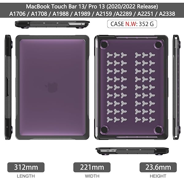 - Batianda Ultimate Protection Case for New MacBook Pro 13 inch Model A2338 M2 M1 Chip A2251 A2289 2022 2020 Release Matte Carbon Fiber Edges Shockproof with Keyboard Cover Screen Protector,Purple offers reliable performance and quality